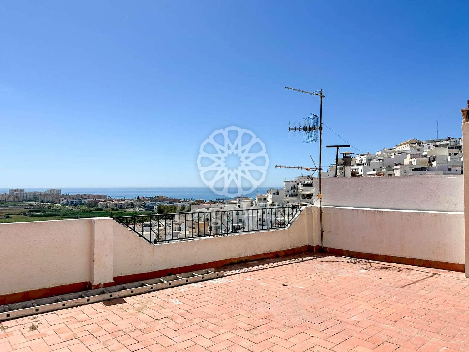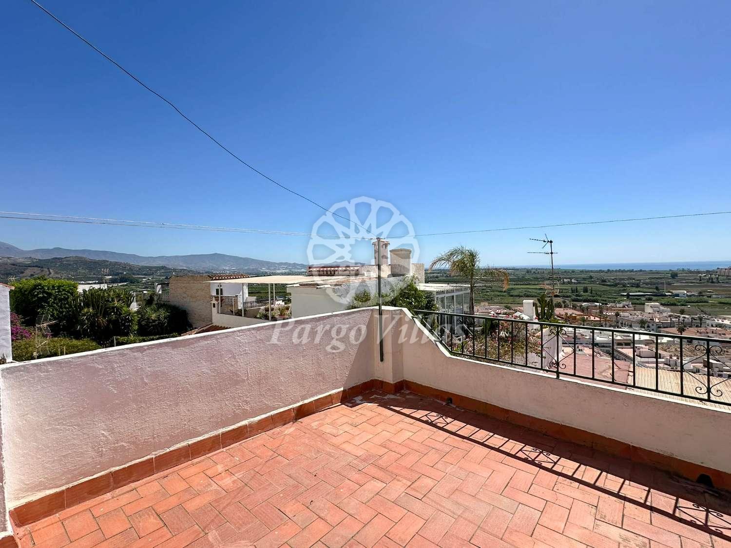 En un encantador callejón del casco antiguo de Salobreña, encontramos esta amplia y luminosa casa con vistas espectaculares al pueblo, la vega y el mar.