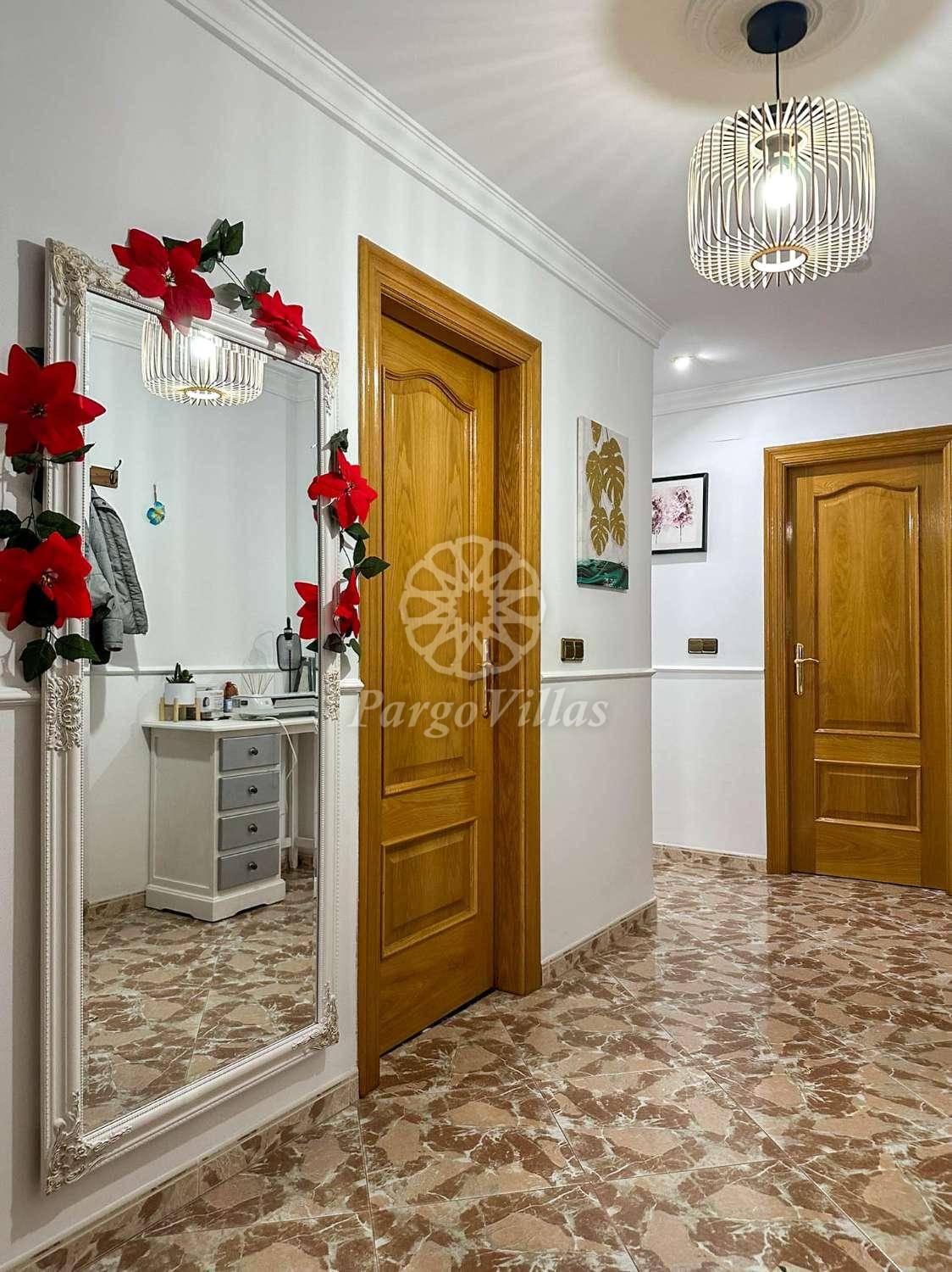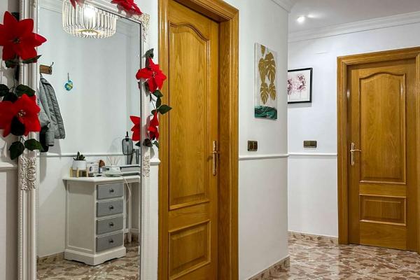 Encontramos un amplio recibidor que nos conduce hacia las distintas estacnias. Por un lado, el gran salón-comedor con acceso a un balcón con vistas espectaculares, una cocina independiente totalmente equipada con electrodomésticos nuevos y acceso a un lavadero con vistas a Sierra Nevada, un baño con una gran bañera de hidromasaje y 3 habitaciones, loa principal con mucha luz y un armario empotrado.
