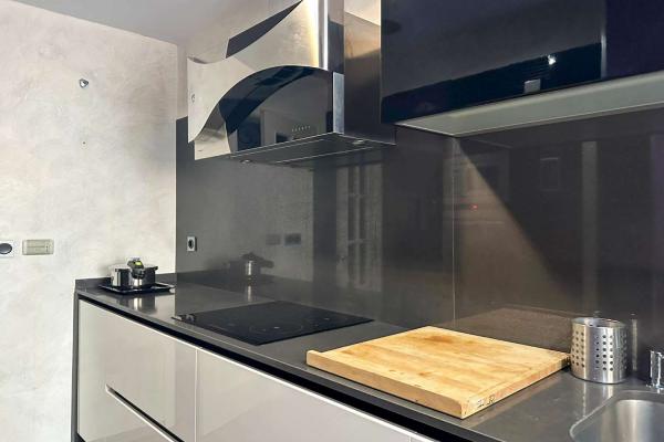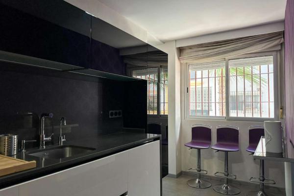 De keuken is apart, ruim en modern, met alle benodigde apparatuur. De woonkamer is ruim en licht en heeft toegang tot een klein terras.