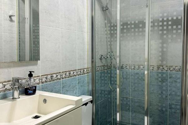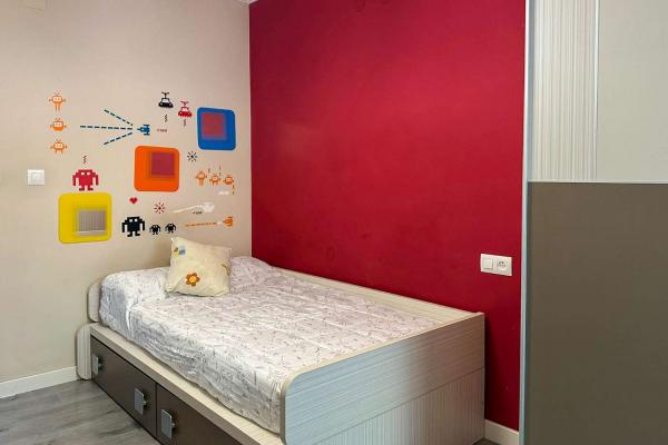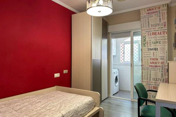 Er zijn 3 slaapkamers, 2 eenpersoonskamers en een tweepersoonskamer met een grote inbouwkast. Het appartement heeft ook 2 badkamers die comfortabel over het appartement zijn verdeeld.