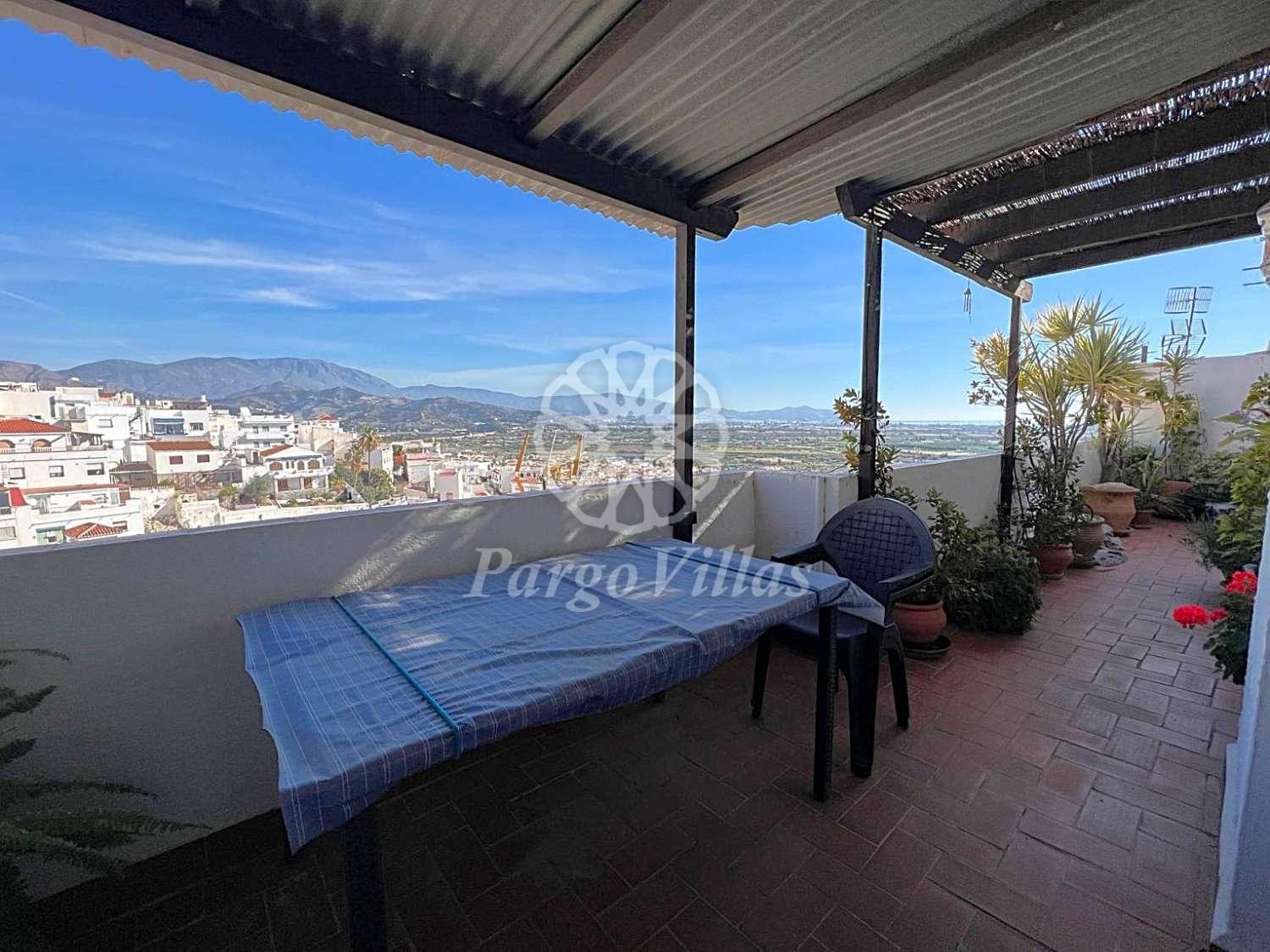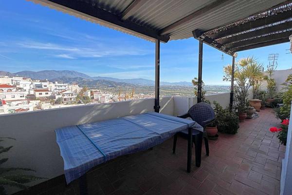 Zodra je binnenkomt, leidt een ruime en lichte hal je naar de verschillende kamers. De ruime open keuken met opslagruimte is perfect gelegen en alleen al via de woonkamer bereiken we een terras met spectaculair uitzicht op het dorp, de bergen en de zee. Dit terras is de perfecte plek om te ontspannen, buiten te eten of gewoon te genieten van de schoonheid van de omgeving.